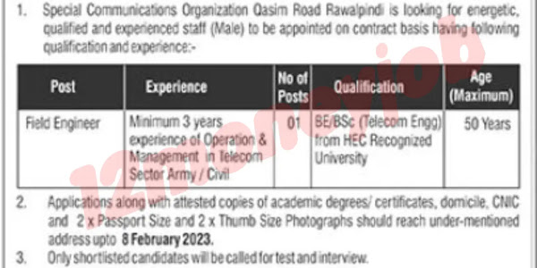 Job Posting for Special Communication Organization in Rawalpindi for 2023